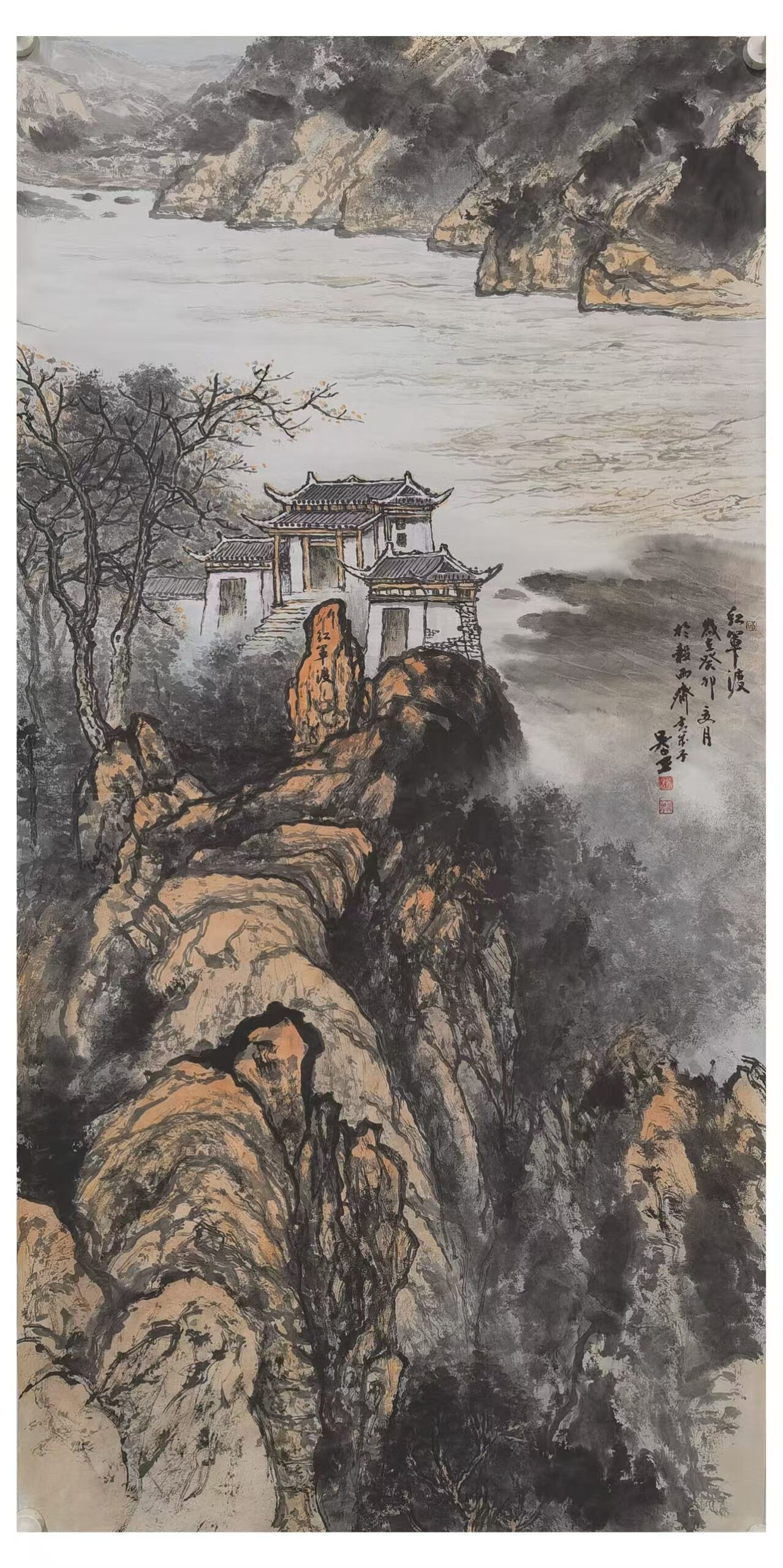 Limited edition hand-painted Chinese ink landscape mural on high-quality rice paper/silk scroll. Frameable and perfect for traditional Asian home décor.